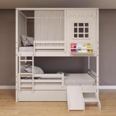 Treliche Casinha Reta Com Grade Removível Escorregador E Cortina Madei