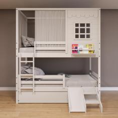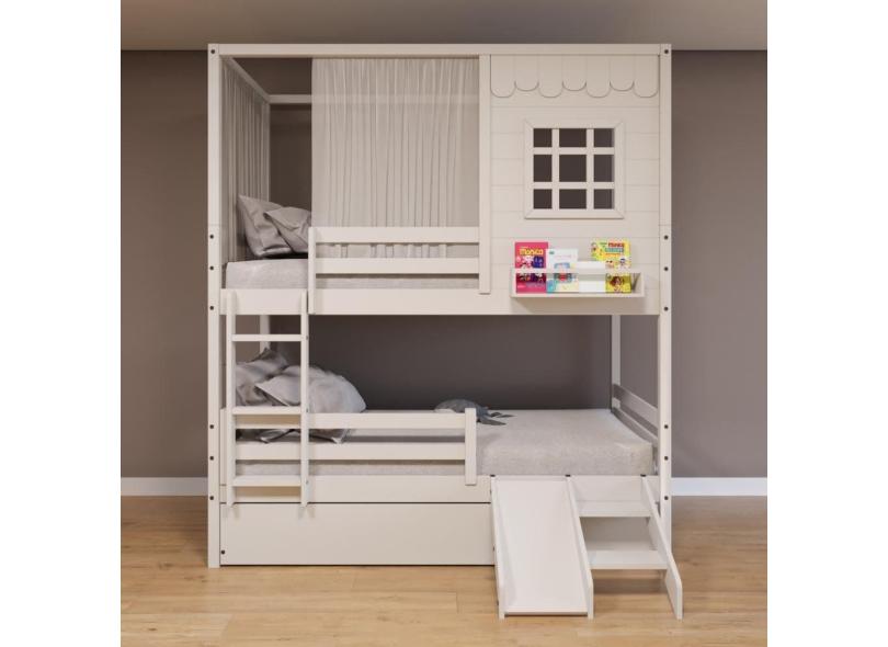 O menor preço encontrado no Brasil para Treliche Casinha Reta com Grade Removível Escorregador e Cortina Madeira Maciça Branco Housin atualmente é R$ 3.171,39.