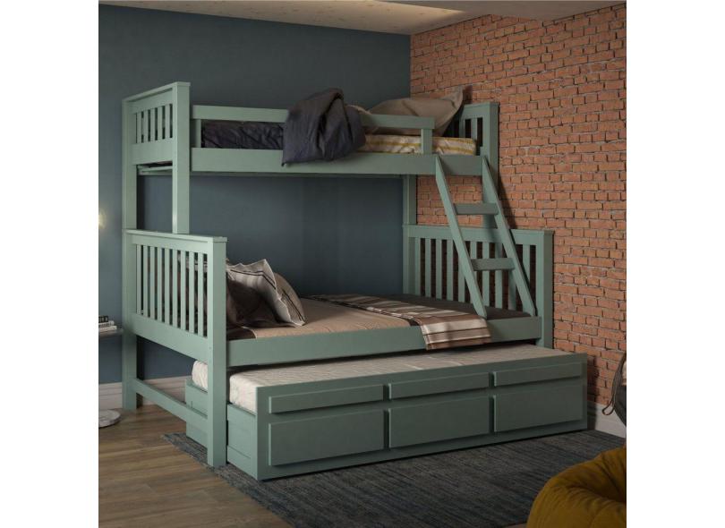 Treliche com Cama de Casal 3 Gavetas Madeira Maciça Móveis Saraiva Verde