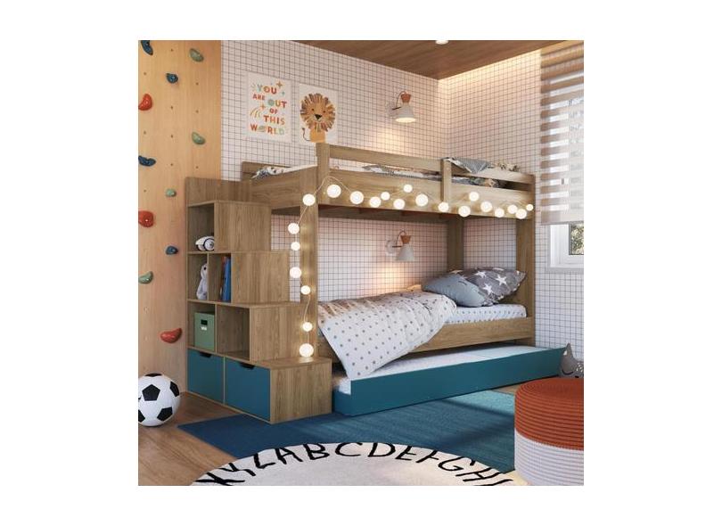 Treliche Infantil com Escada, Nicho e Gaveta Aveiro com Azul - Complet