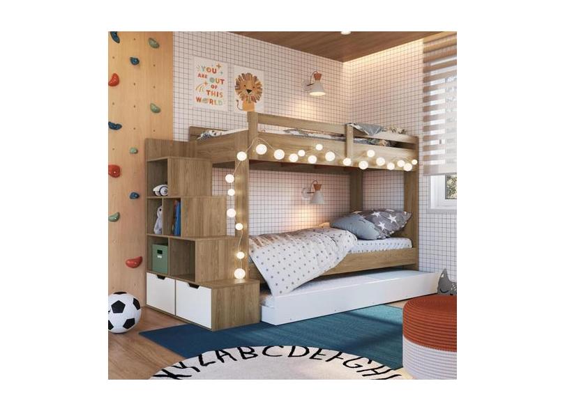 Treliche Infantil com Escada, Nicho e Gaveta Aveiro e Branco - Complet