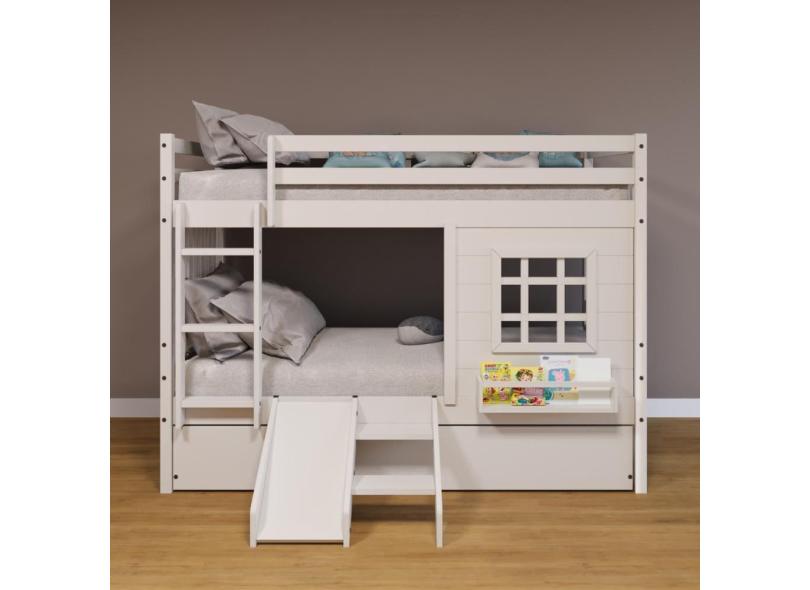 Treliche Infantil com Janela Escorregador e Cortina Madeira Maciça Branco Housin