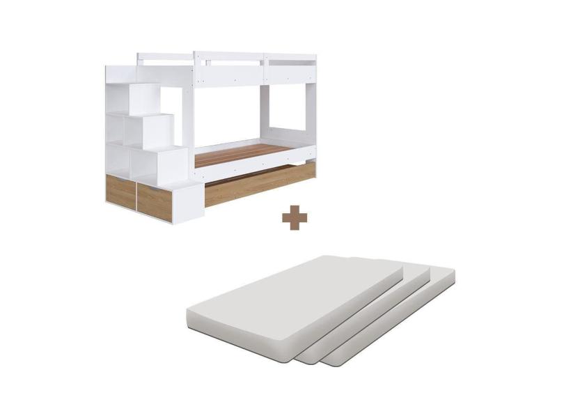 O menor preço encontrado no Brasil para Treliche Solteiro Com Escada E 03 Colchões Branco Aveiro Oak Dermott Completa Móveis atualmente é R$ 2.446,31.