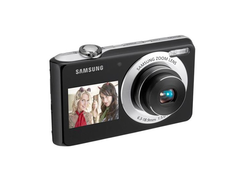 Com duas telas de LCD, a Samsung PL100 torna possível ser fotógrafo e fotografado ao mesmo tempo e, além disso, conseguir um enquadramento preciso.