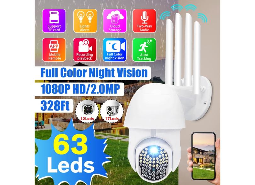 63 LEDs Câmera IP WiFi 2MP 1080P Wireless CCTV PTZ Câmera IR Segurança Externa Vigilância NetCam