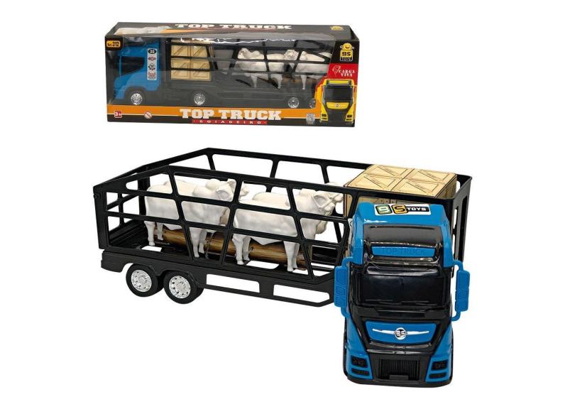 Caminhão Boiadeiro com 4 Bois e Acessórios - Azul