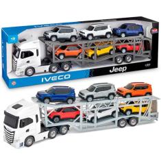 Caminhão Infantil Cegonha Iveco Com 6 Jeeps Carrinho Com Pneus de Borr