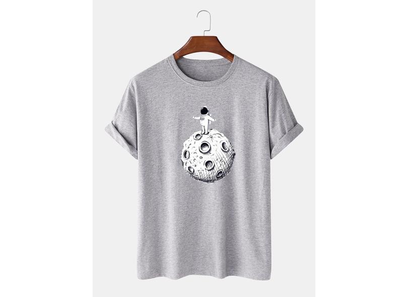 Astronauta bonito dos desenhos animados com estampa de camisetas de manga curta 100% algodão