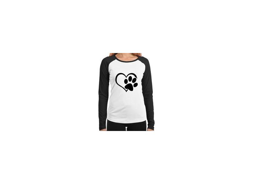 Baby Look Raglan Coração Patinha Manga Longa - Foca Na Moda
