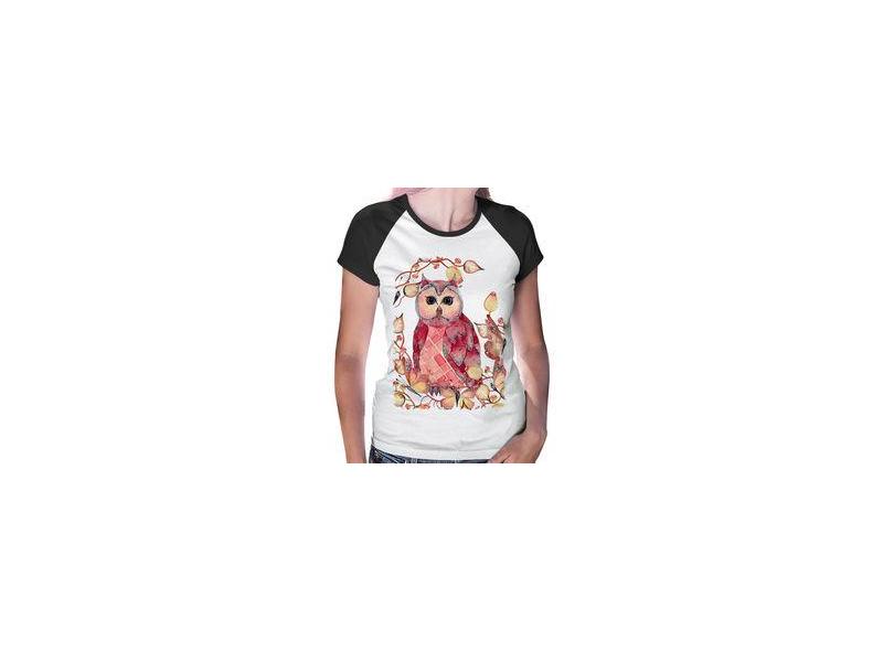 Baby Look Raglan Coruja E Folhas - Foca Na Moda
