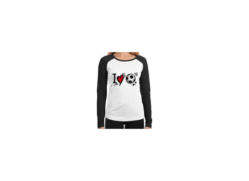 Baby Look Raglan I Love Futebol Manga Longa - Foca Na Moda