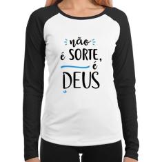 Baby Look Raglan Não É Sorte, É Deus Manga Longa - Foca Na Moda