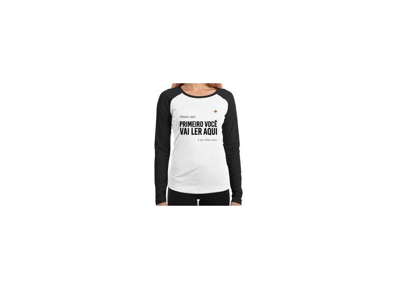 Baby Look Raglan Primeiro Você Vai Ler Aqui Manga Longa - Foca Na Moda