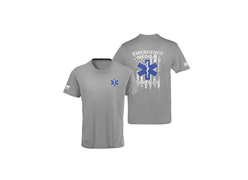 Camiseta com logotipo EMS | Camiseta de serviços médicos de emergência com bandeira americana desbotada, , M