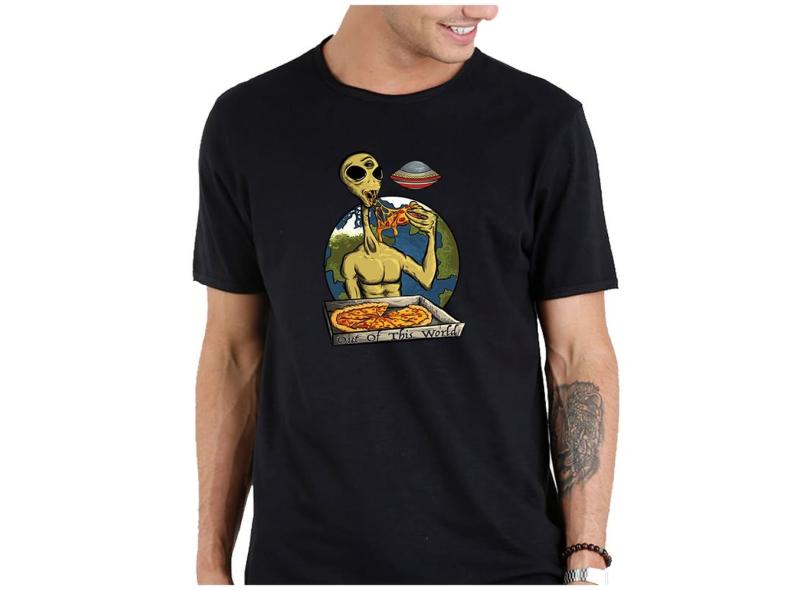 Camiseta masculina algodao ET alien comendo pizza