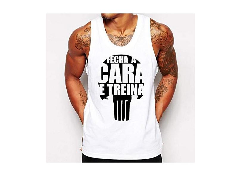 Camiseta Masculina Regata Frases Academia Fecha a Cara e Treina Malhação Body Build bodybuilder