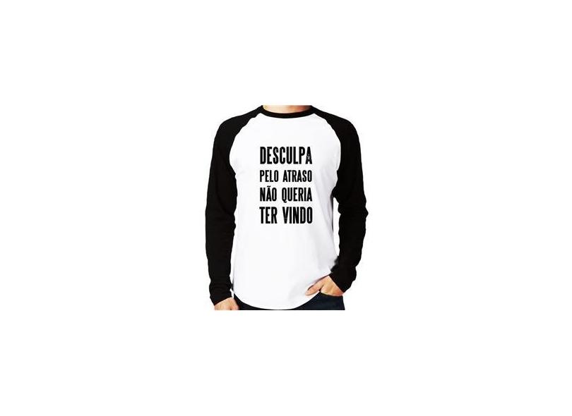 Camiseta Raglan Desculpa pelo atraso não queria ter vindo Manga Longa