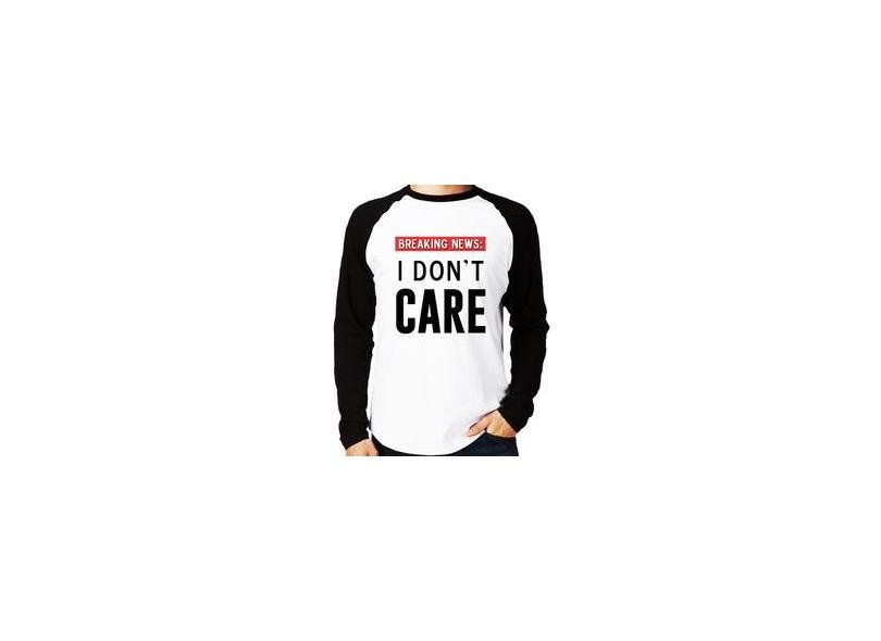Camiseta Raglan I Don't Care Manga Longa - Foca Na Moda
