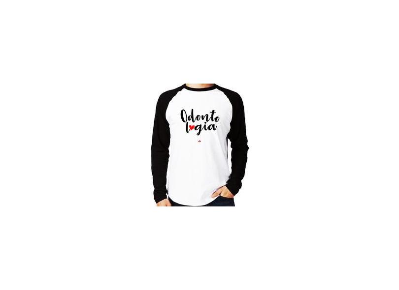Camiseta Raglan Odontologia Por Amor Manga Longa - Foca Na Moda