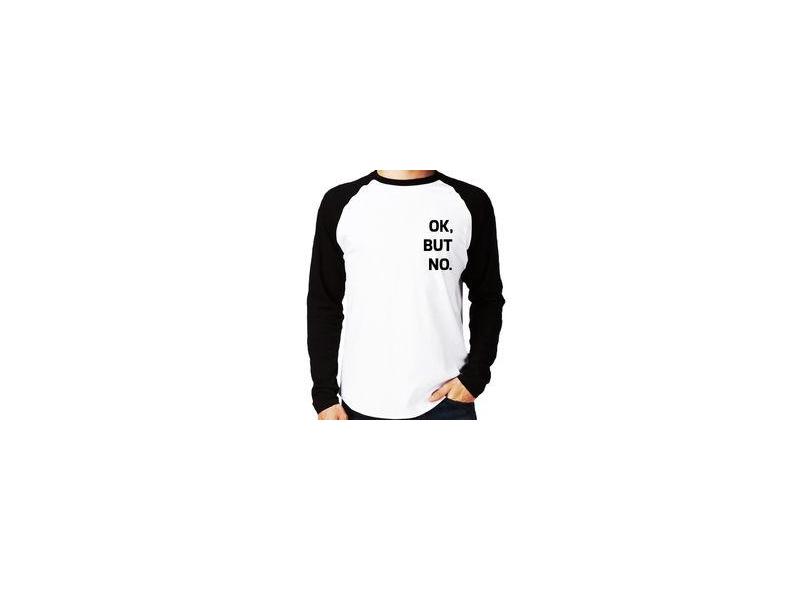 Camiseta Raglan Ok, But No. Manga Longa - Foca Na Moda