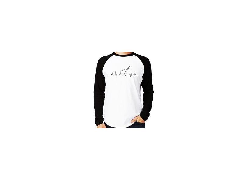 Camiseta Raglan Violão Batimentos Cardíacos Manga Longa - Foca Na Moda