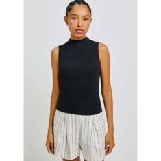 Regata Básica Feminina Em Malha Canelada Gola Alta