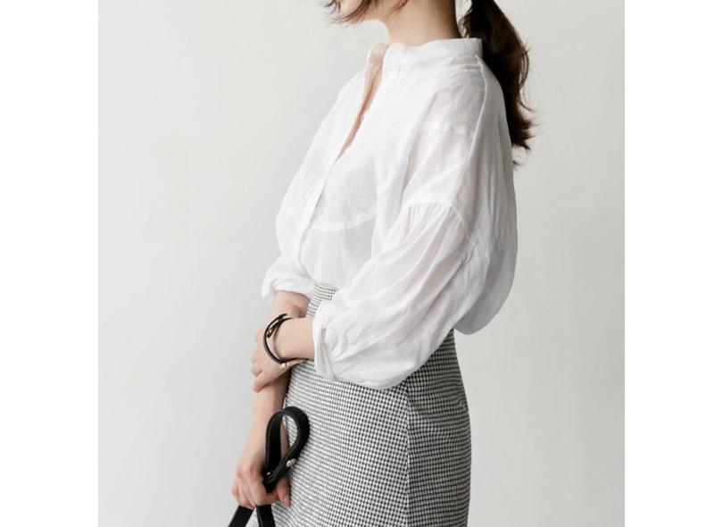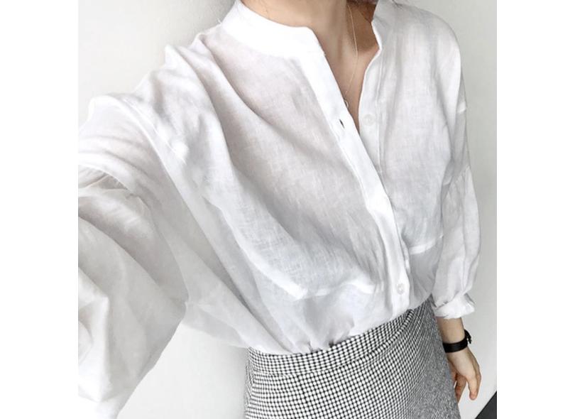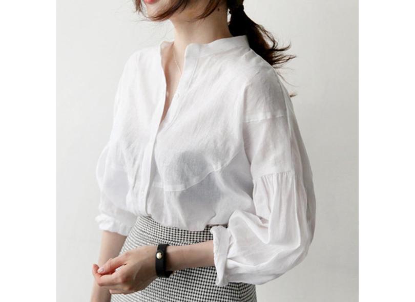 Roupas Femininas Simples Manga Longa Camisa de Algodão e Linho Pure Color