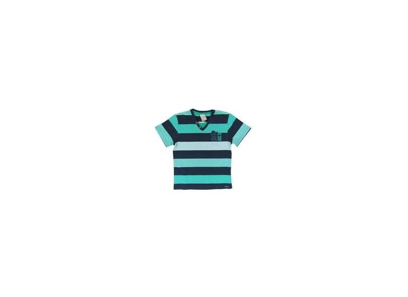 Camiseta Menino Infantil Casual Estilosa Verde e Marinho Verão Decote V Listrada Manga Curta Bg.Gr - Boca Grande