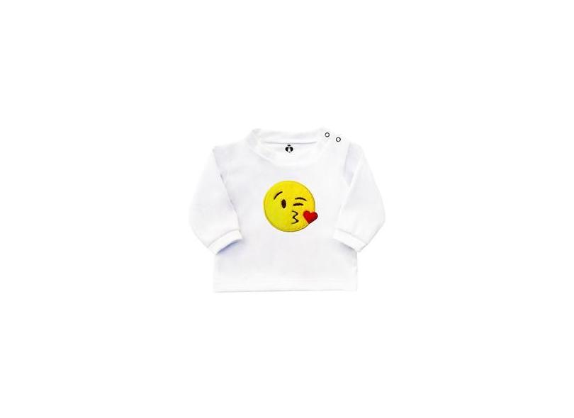 Camiseta Bebê Bordada Manga Longa Emoticon Mandando Beijo
