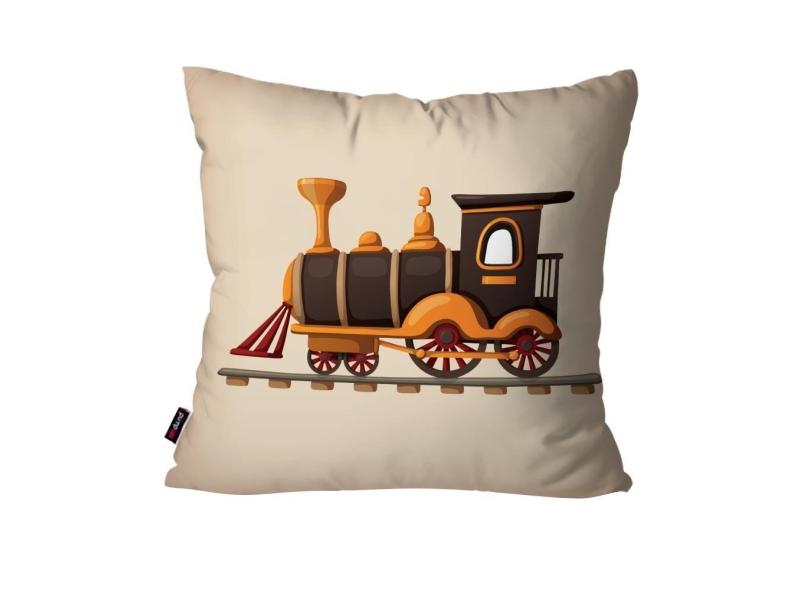 Capa de Almofada Avulsa Infantil Retrô Bege Locomotiva