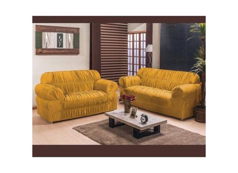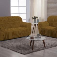 Capa De Sofá 2 E 3 Lugares 21 Elásticos Malha Gel Mostarda