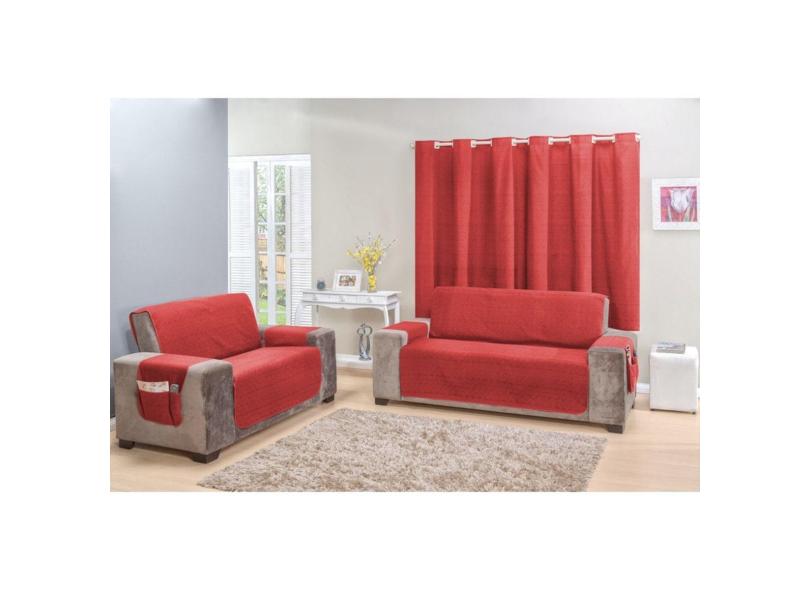 Capa De Sofá 2 E 3 Lugares E Cortina D Sala 2,0X1,7 Vermelho