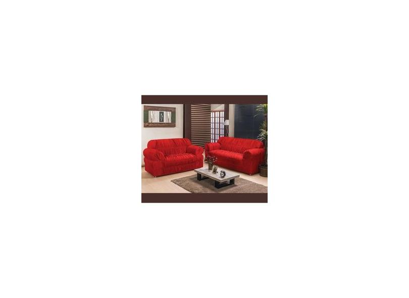 Capa de Sofá PADRÃO 2 e 3 Lugares Justa Malha Grossa 21 Elásticos Manta para Sofá VERMELHO