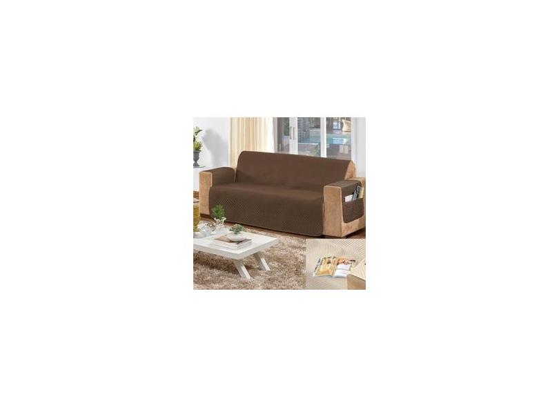 Capa Protetora de Sofá Casa Dona King 2 e 3 Lugares com Porta Controle Poliéster Tabaco