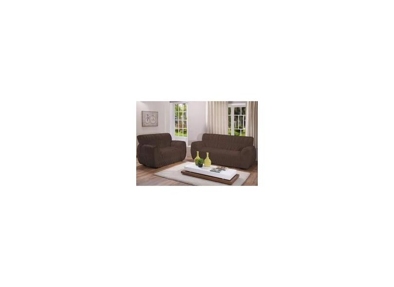 Kit 2 Capas De Sofa 2/3 Lugares 21 Elásticos Marrom