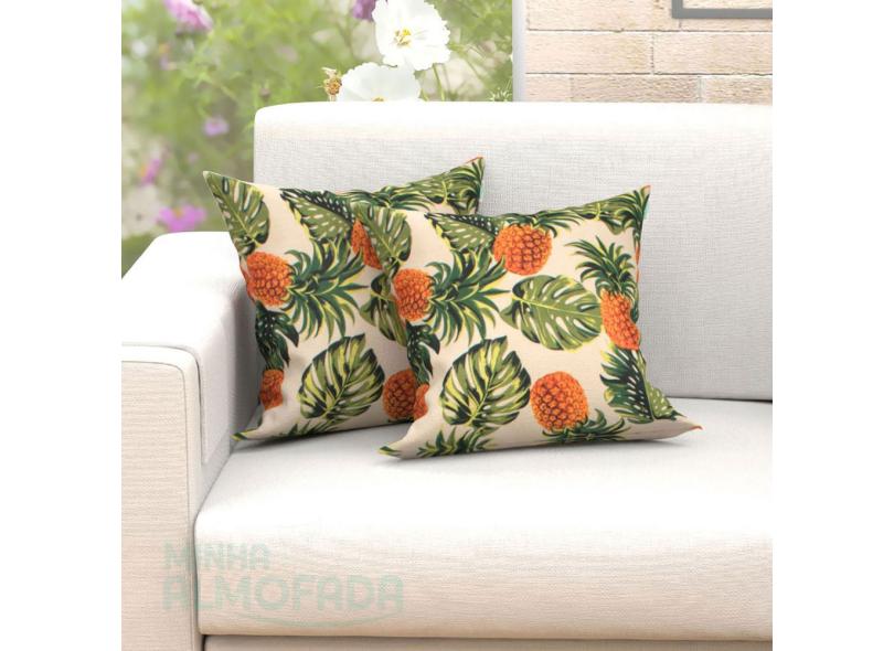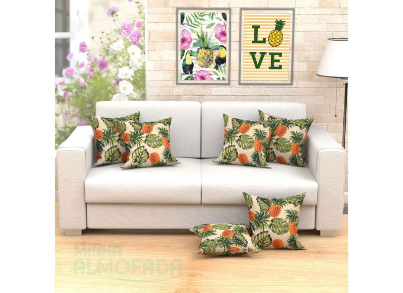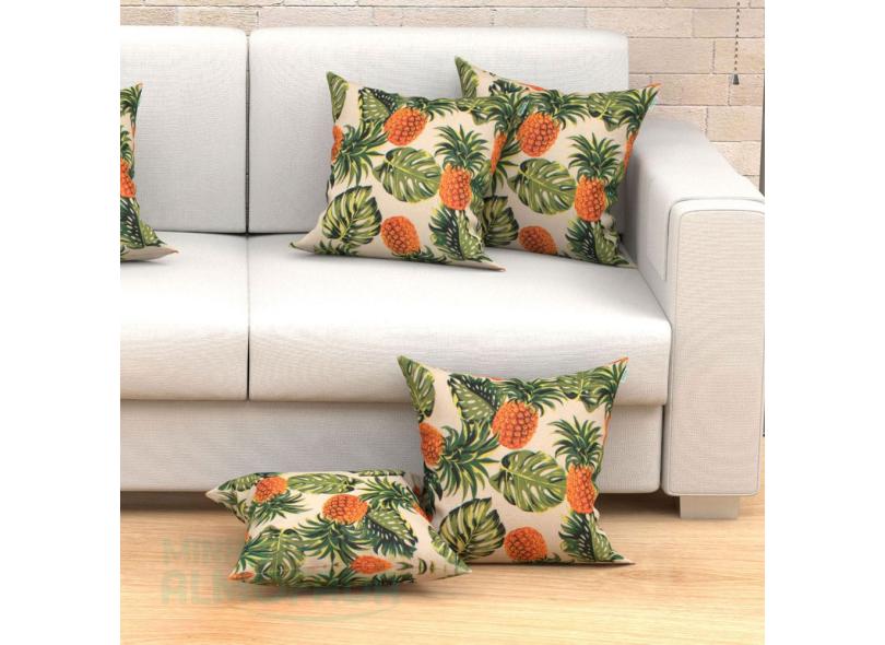 Kit Capas De Almofadas Decorativas Palha Abacaxi Tropical 45cm X 45cm Com Zíper 6 Unidades