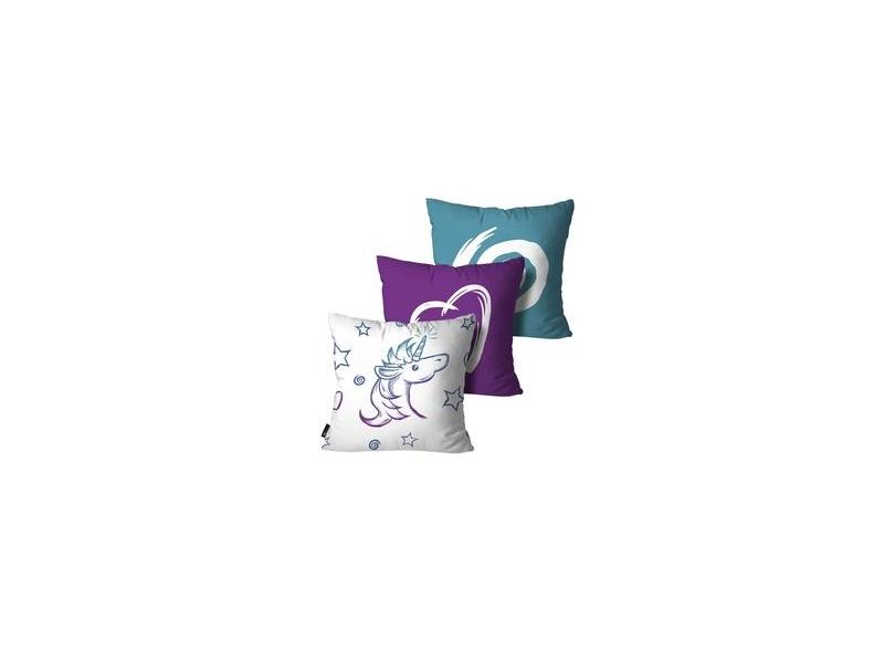 Kit com 3 Capas para Almofadas Mdecore Unicórnios 45x45cm Colorido