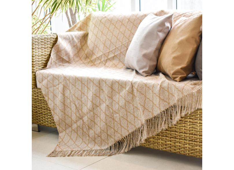 Manta Xale Para Sofá Grande 2,10M X 1,40M Franja Roma Bege