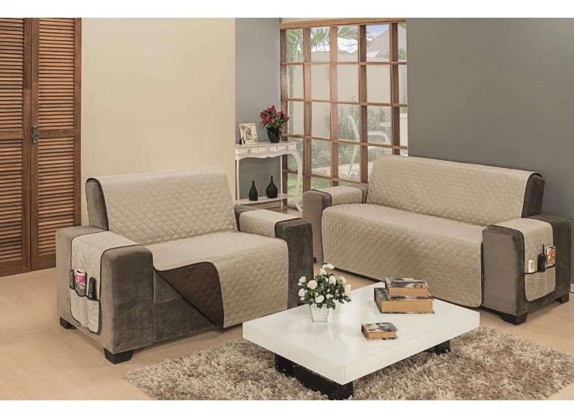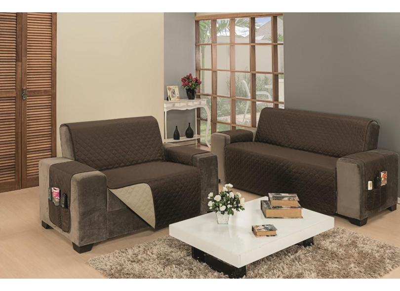 Protetor De Sofá 3 Lugares King Dupla Face Kaqui Marron