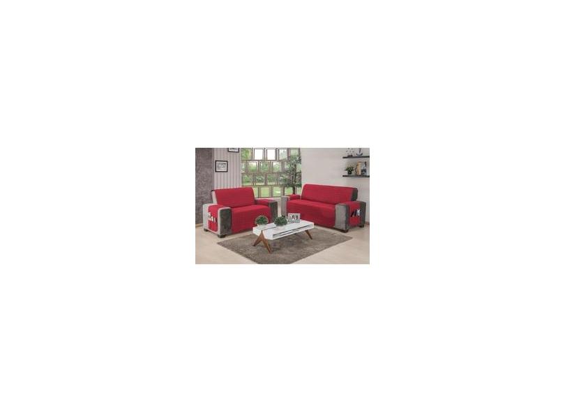 Protetor De Sofá Charme Dupla Face 3 E 2 Lugares Vermelho 02 Peças