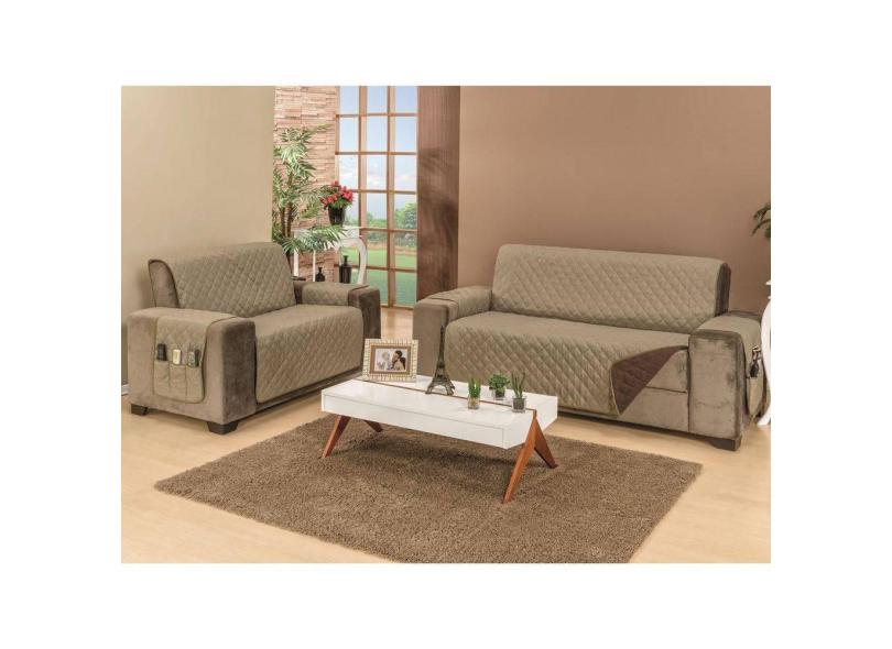 Protetor De Sofá Manu Para 2 E 3 Lugares Dupla Face Tecido Microfibra - CaquiMarrom