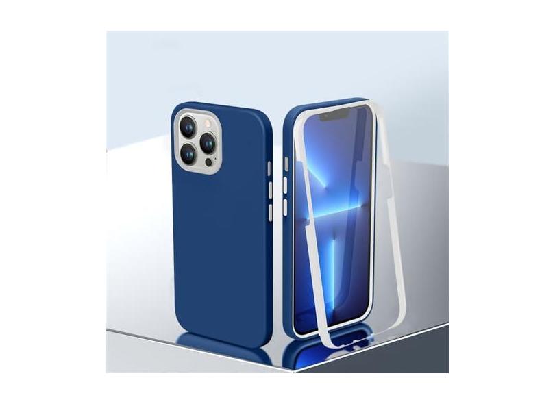 2 em 1 360 capa de telefone de corpo inteiro para iPhone 14 13 11 12 Pro Max X XR XS 14 Plus Candy Color Soft Liquid Silicone Cover, T1, para iPhone 13Pro
