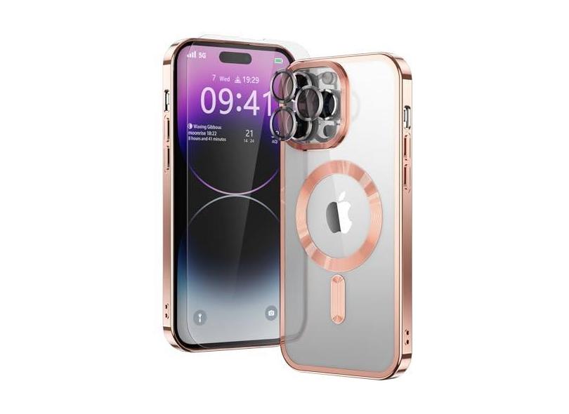(2024) Capa magnética transparente para iPhone 13 Pro com MagSafe, com proteção para lente de câmera e protetor de tela, capa de telefone fina fina magnética segura para mulheres meninas homens para
