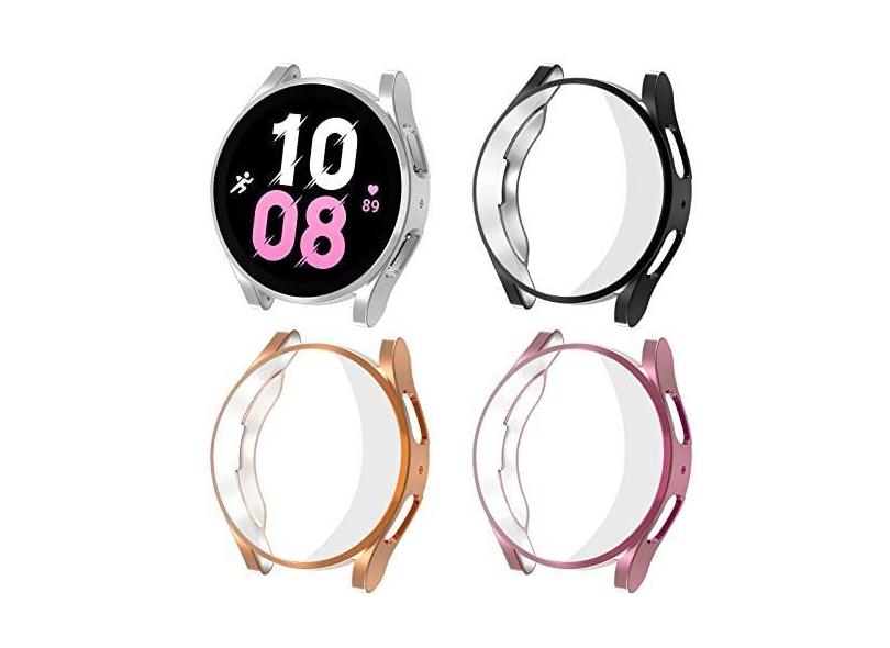 4 peças protetoras de tela para Samsung Galaxy Watch 5 capa de 40 mm e 44 mm/FE 40 mm masculino/feminino, macia e totalmente banhada a arranhões + capa protetora para Samsung Galaxy Watch 4 capa de 44