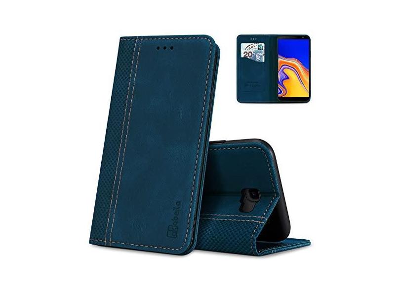 AKABEILA Capa para Samsung J4 Plus de luxo de couro PU para Samsung Galaxy J4 Prime Flip Folio carteira capa feminina masculina capa com suporte para cartão fecho magnético suporte à prova de choque 6 polegadas