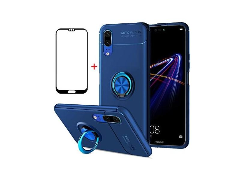 AKABEILA Capa protetora de tela para Huawei P20 compatível com Huawei P20 [com vidro temperado] fibra de carbono silicone suporte à prova de choque capas para celular 5,8 polegadas