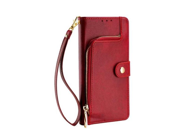 Alça de mão 3Cards Slots Capa de couro para iPhone 15 Pro Max 14 13 12 11 Pro Max 15 Plus 13 Pro Capa carteira com zíper e bolso flip, vermelha, para iPhone 14Pro Max