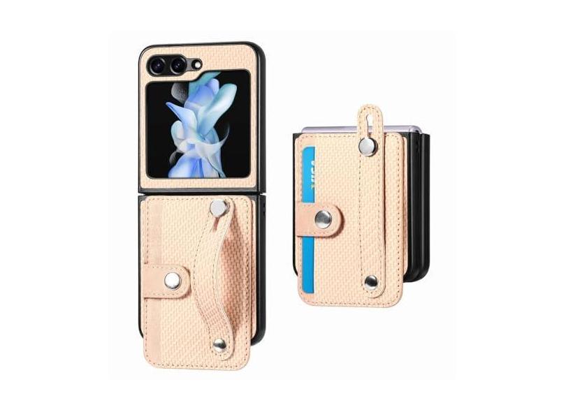 Alça de pulso carteira titular do cartão caso do telefone para samsung galaxy z flip 6 5 4 3 flip5 flip6 5g escudo protetor de couro, cáqui, para galaxy z flip 4
