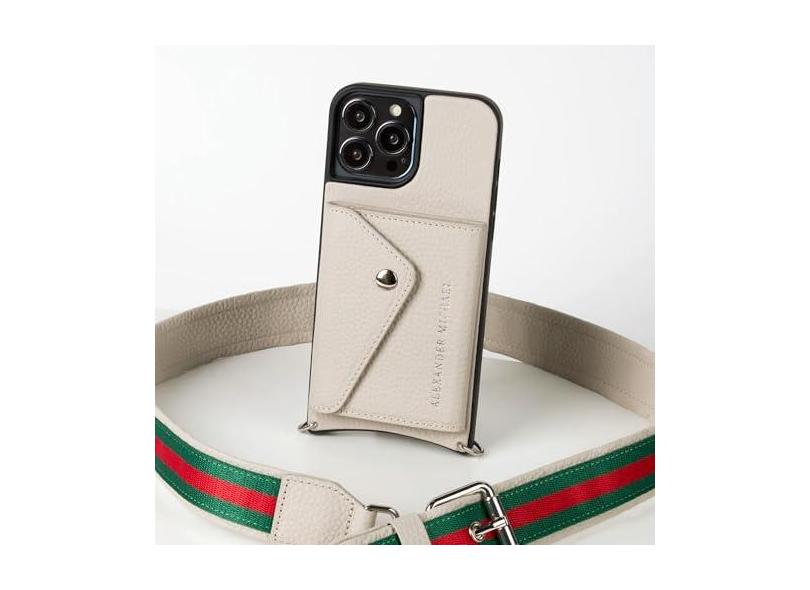Alexander Michael Valentina Capa transversal para celular e carteira com alça reversível - para visual de 2 estilos em couro premium - de carteira tripla - cinza compatível com iPhone