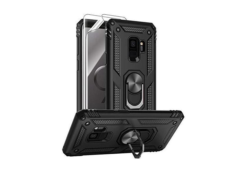 Androgate Capa para Samsung Galaxy S9 com protetores de tela HD, suporte de anel de metal de nível militar com suporte de 4,5 m, capa à prova de choque testada contra quedas para Samsung Galaxy S9